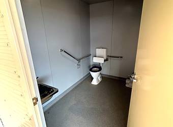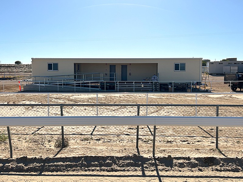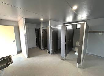 The new single structure includes equal-sized male and female jockey rooms, enclosed showers, and toilet cubicles.