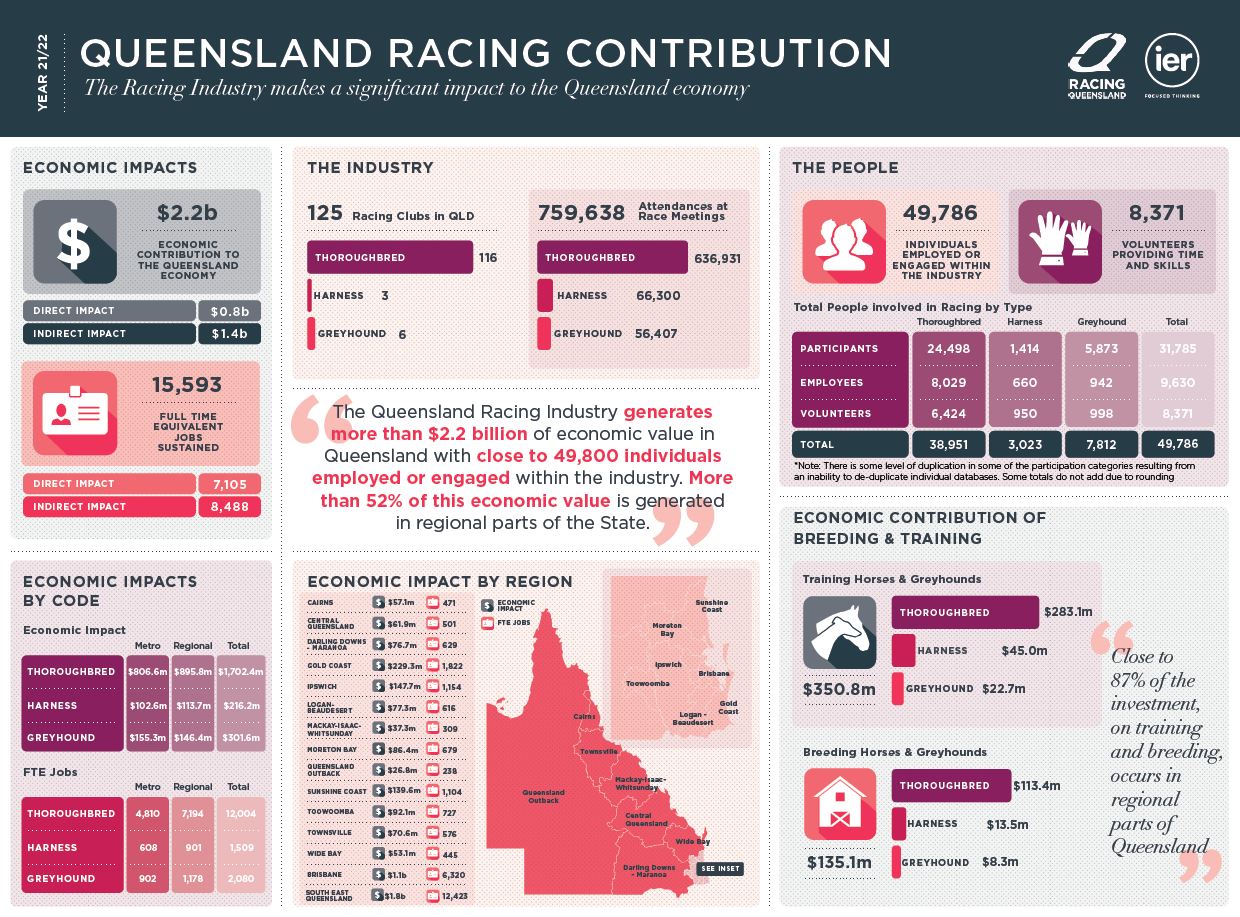 The Queensland racing industry impact on the state’s economy now exceeds $2.2 billion per annum.